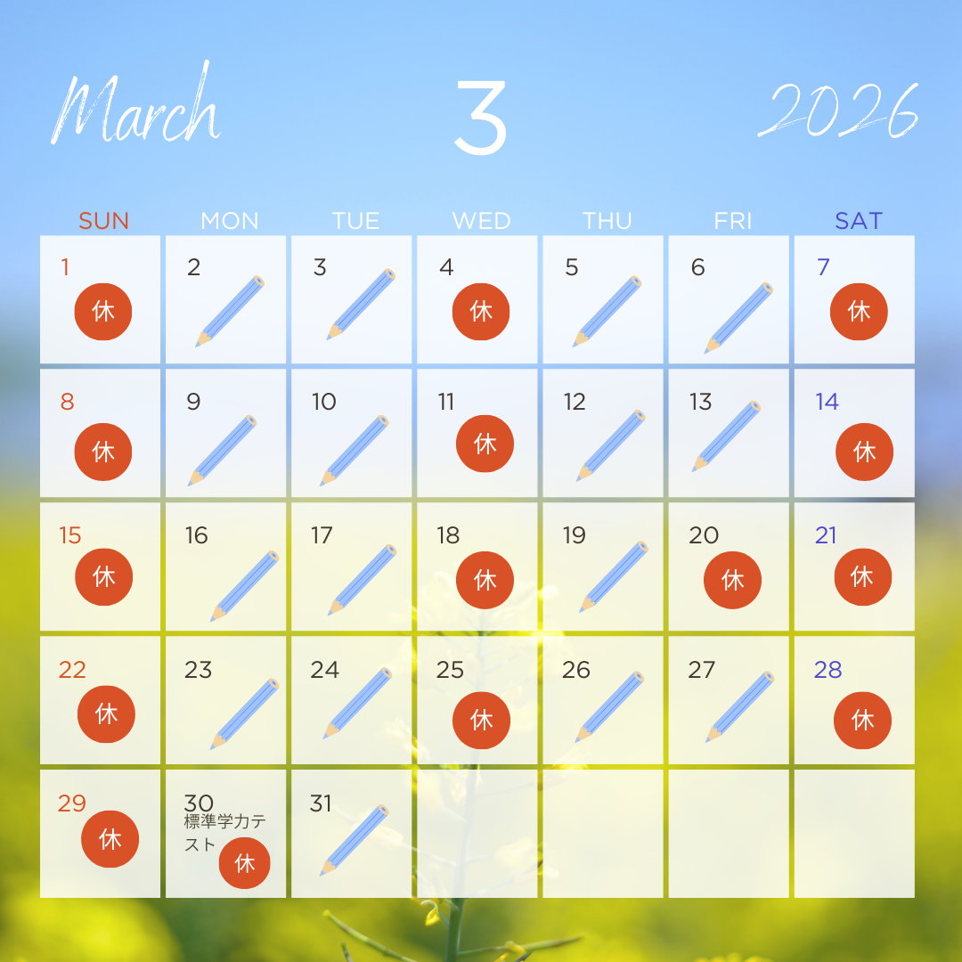 2026年3月 公文式平岡南教室学習日
